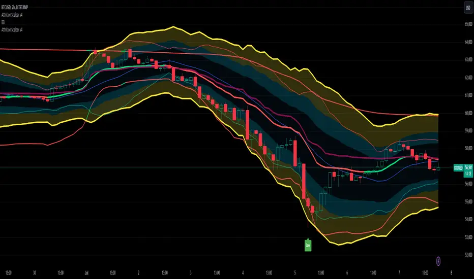 Tried to make this a standalone indicator with almost no settings to tweak to make it work on all timeframes and all assets, cleaned up the stuff that i thought wasn't really working well and implemented a better high/low signals, removed the buy/sell signals.This is basically v3.0 at this point.