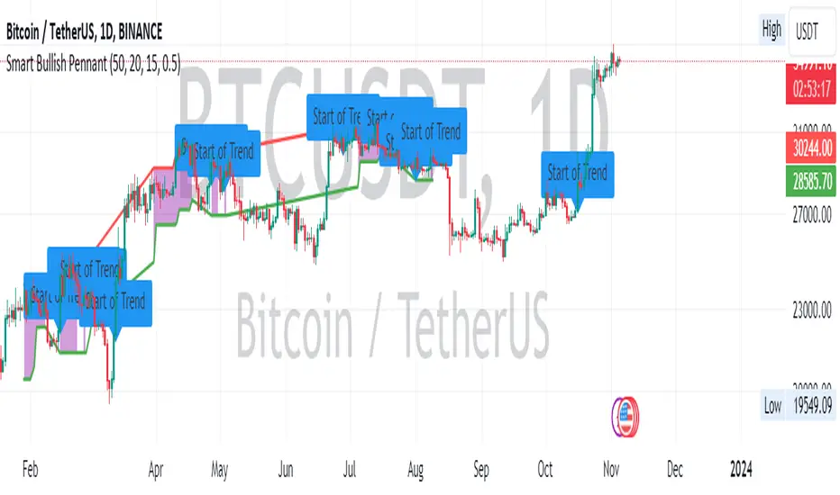 By employing this script, traders can automate the process of identifying the Bullish Pennant pattern, aiding in timely decision making for potential trade entries and exits.