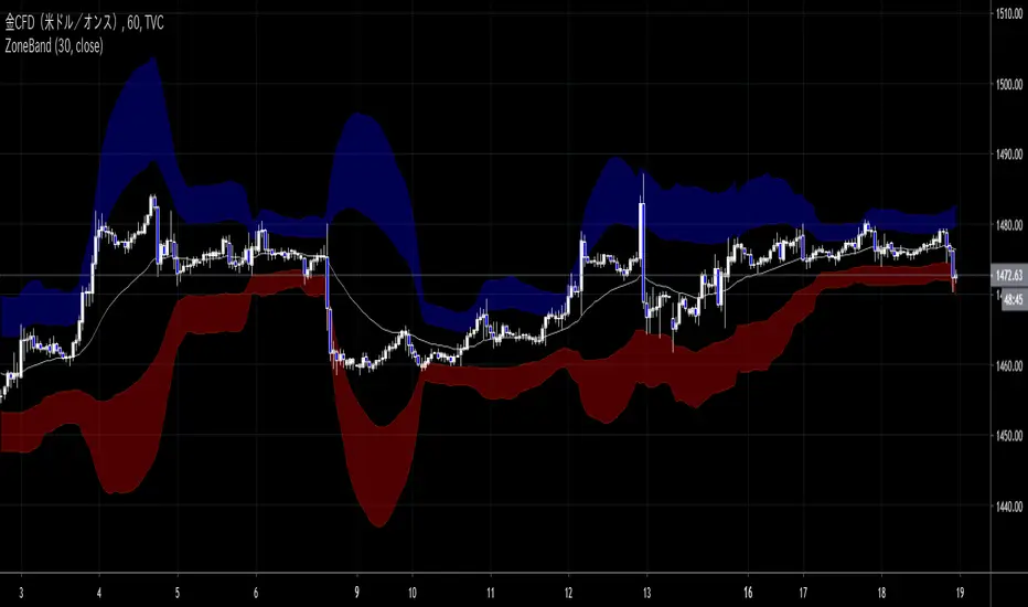 Bollinger band is converted to EMA , and support and resistance bands are made into regions