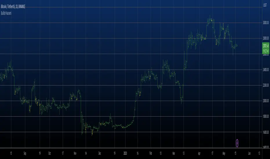 This is a bullish reversal pattern formed by two candlesticks in which a small