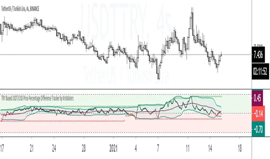 Indicator helps you that track the price percentage difference between USDT/TRY and USD/TRY market pairs.Script de código aberto