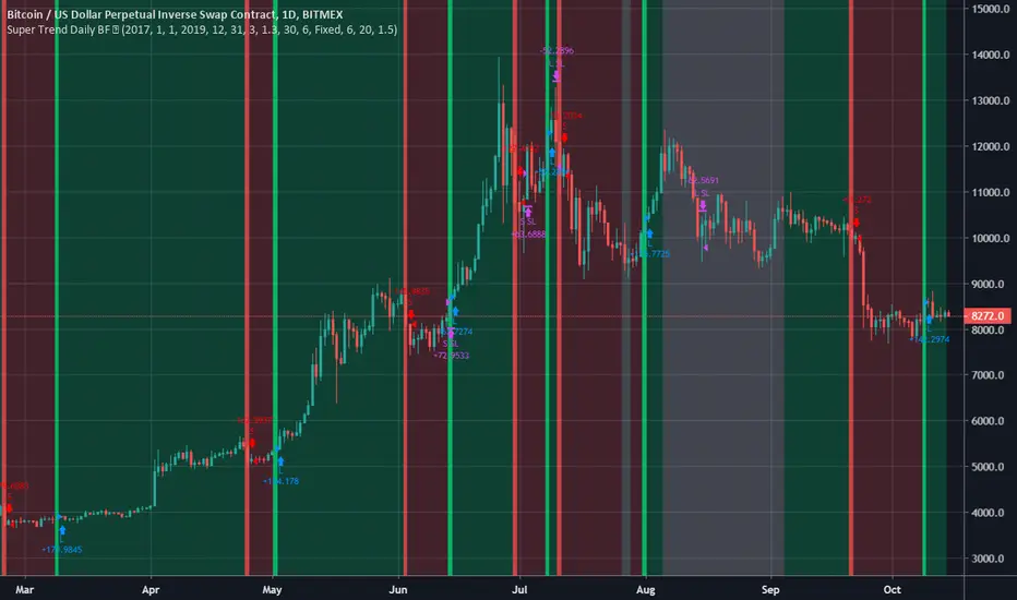 This strategy was optimised for XBT/USD on Bitmex 1 day chart, ideal settings for other pairs will differ.
