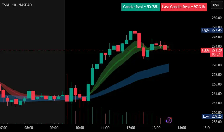 - for the current candle Rvol percentage, a check is made every 1m during the 10m candle and if the volume is on track to being over 100% the background will dynamically show a green colour.
