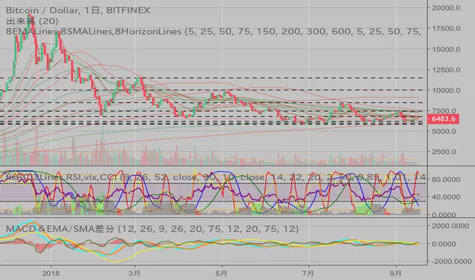This script plots max 8 EMA(Exponential Moving Average),8 SMA(Simple Moving Average), and 8 Price_Horizon Lines.