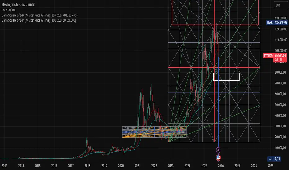 See where price is in the square: early in the cycle (0–36), mid (around 72), or late (108–144).