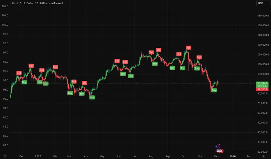 Heikin Ashi Candles: These modified candlesticks smooth out price action, making it easier to identify trends. Instead of using traditional open-high-low-close data, Heikin Ashi candles are calculated differently to better capture the overall market direction, reducing noise. The user can switch between regular candles and Heikin Ashi candles based on preference.