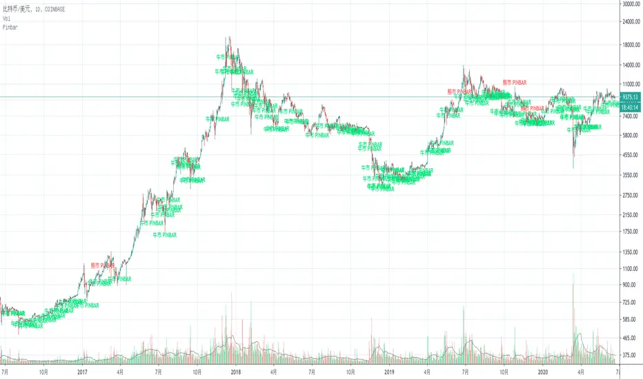 Pinbar概念来自于Price Action,基本类似于国内K线分析中的十字星,锤子线。该指标的主要功用在于帮助识别盘面出现的Pinbar,分为牛市Pinbar和熊市Pinbar。