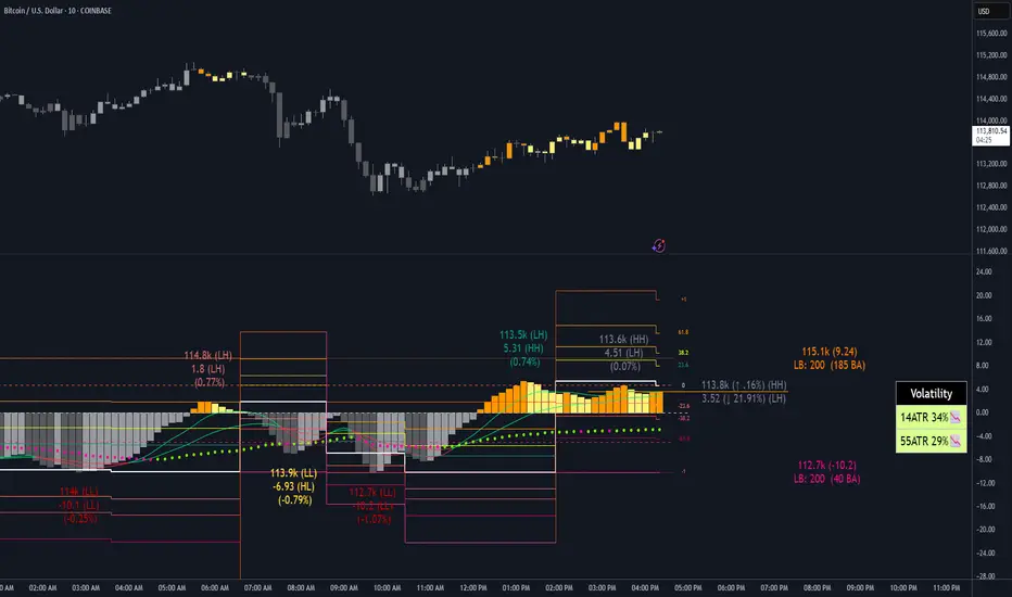 Blends up to 21 VFI signals (5, 13, 21, 34… up to 610) into smartly paired averages (e.g., 13/34, 55/144) — forming a smoothed composite VFI that’s more adaptive, less noisy, and highly responsive across market conditions.