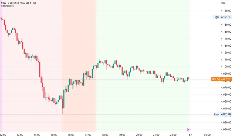 Session Highlights: Marks Asian, European (London), US (New York), and Overnight sessions with distinct background colors.