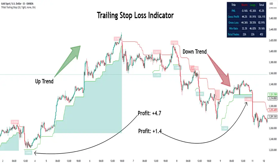 The trailing stop indicator dynamically adjusts stop-loss (SL) levels to lock in profits as price moves favorably. It uses pivot levels and ATR to set optimal SL points, balancing risk and reward.