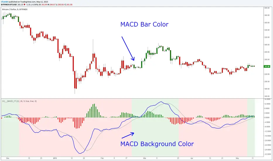 This version of the MACD indicator is 'trawling' (checking) if the MACD histogram and the zero line crossing with the MACD line are both positive or negative. The idea behind this is to show areas with higher or lower risk.