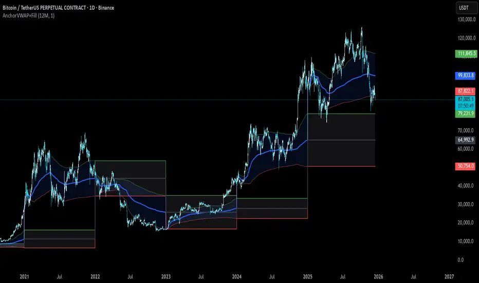 anchored VVWAPS and previous month VWAP extend out into the following month. Includes 1SD for both
