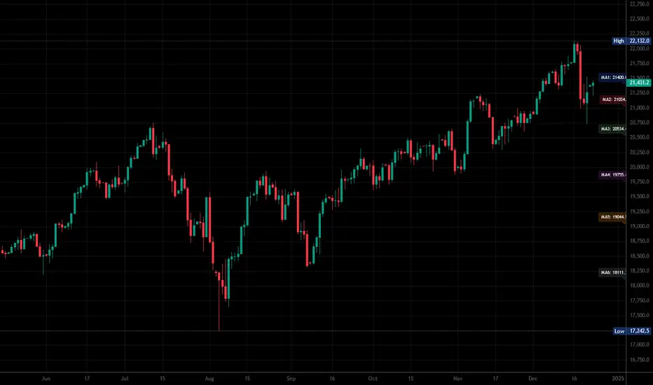 Moving Averages (MAs) are among the top three most crucial indicators for trading, and I believe that the Daily, Weekly, and Monthly MAs are especially critical. The way I’ve designed this indicator allows you to combine MAs from your Daily timeframe with one or two from the Weekly or Monthly timeframes, depending on what is most relevant for the specific product or timeframe you’re analyzing.