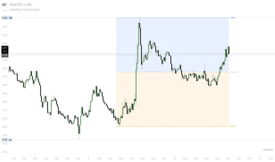 The equilibrium reflects the "fair value" of the price within the considered range. Traders use this as a benchmark to assess whether the current price is in the Premium or Discount zone.