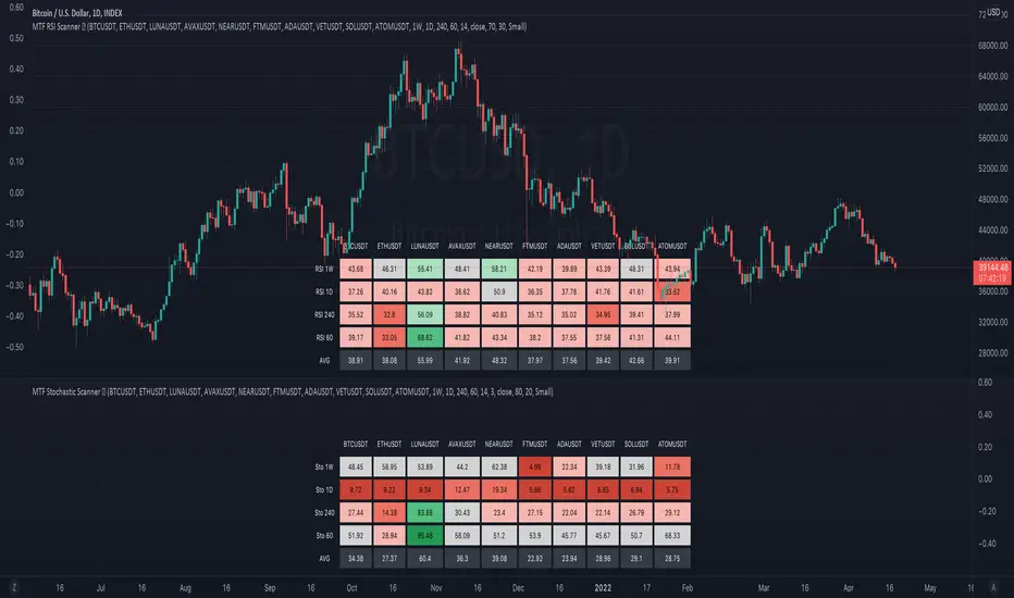 This Stochastic scanner can be use to identify overbought and oversold of 10 symbols over multiple timeframes