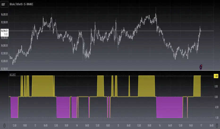 Monitor the colored background area: • Yellow indicates bullish state (-1) • Fuchsia indicates bearish state (1) • Gray indicates neutral state (0)