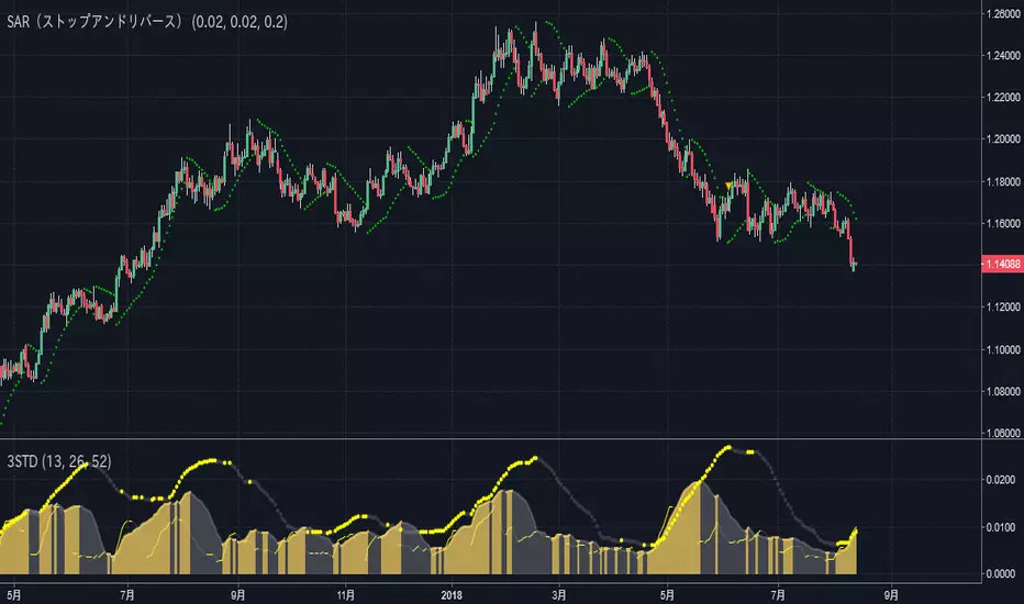 追って掲載するTriple Smoothed ADXと併用して、Triple STD-ADXとして使用することを想定して作成した指標です。