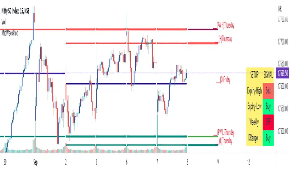 Mid week high and low Plotting , usefull for finding a mid range or Expiry range detail of High and low