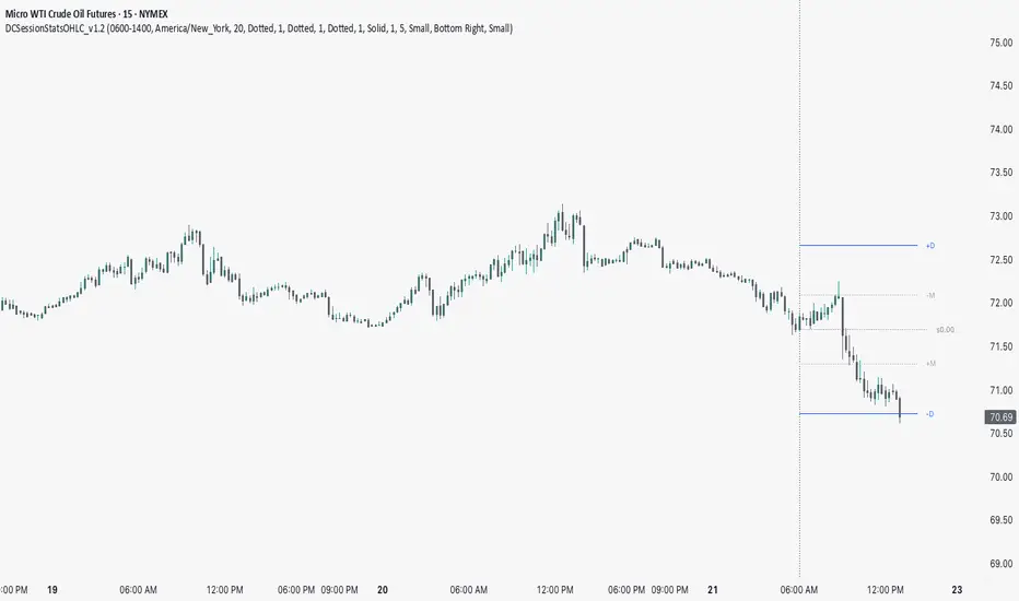 Ideal for traders analyzing intraday or custom session behavior, identifying key price levels, and gauging market sentiment over time.