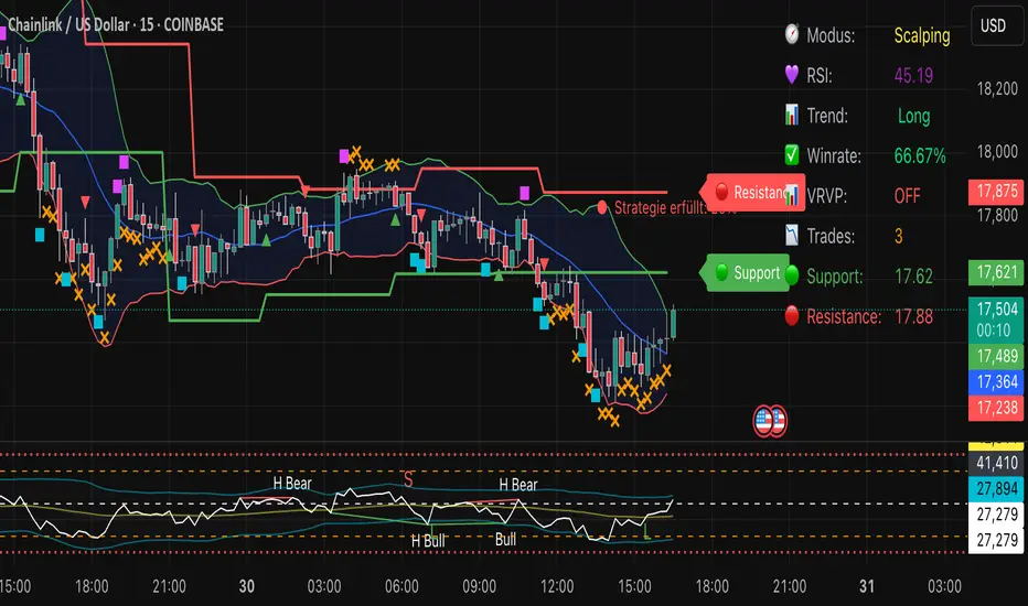 A detailed info panel visualizes all key metrics in real-time directly on the chart. Thanks to its versatile configuration options, the script can be adapted for various trading styles, including swing trading, day trading, and scalping.