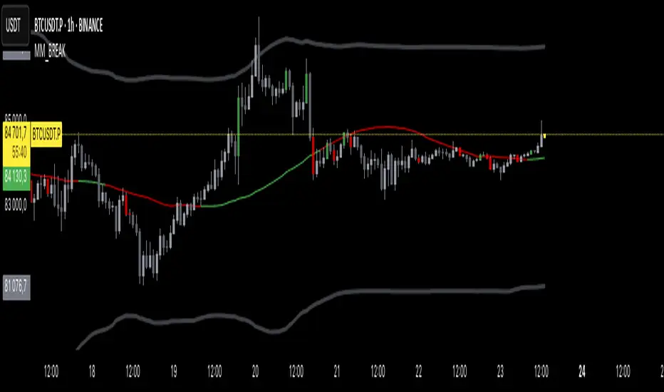 The Melody Markets Breaks indicator is an advanced tool designed to help traders identify price breakouts and key trend areas using a powerful combination of moving averages, Bollinger Bands, and advanced signal detection.