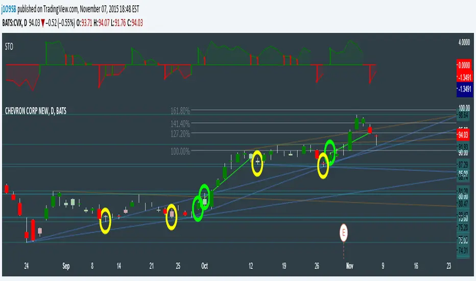 CVX Example: This is not a full analysis of CVX's stock , just an example potential trades. On the posted chart I used a weekly and a daily STO.