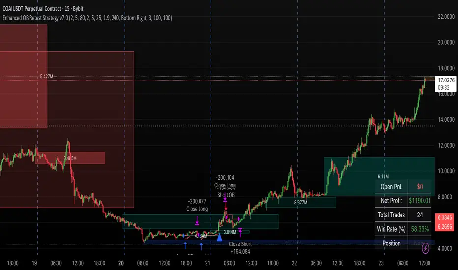 The OB Retest Strategy is a full Order Block retest trading system that detects, plots, and trades OB zones across multiple timeframes. It uses structure breaks, retrace depth, and ATR filters to identify strong reversal or continuation setups.