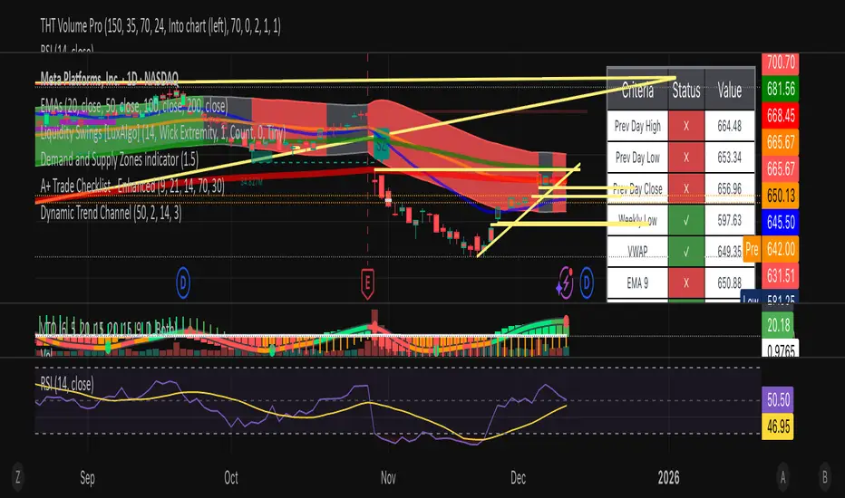 A powerful trend-following indicator that adapts to market conditions in real-time. The Dynamic Trend Channel uses ATR-based volatility measurements to create intelligent support and resistance zones that adjust automatically to price action.Key Features: