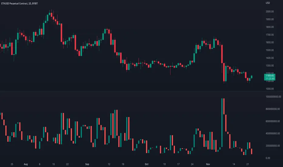 Volume data can be interpreted in many different ways. This is a very basic script and novel idea to display volume as a chart. The purpose of this script is to visually help identify volume breakouts and other common chart patterns. While this indicator could be useful for finding big moves and early reversals it not reliable for determining the direction of the move.
