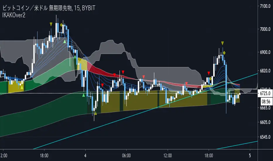 We have set a period such as EMA to use 5 minute bars and the first band is period 60 and 100 EMA . The color of the belt changes according to the position of the period 5EMA-25EMA-50EMA. The second sash is based on a 60- and 100-EMA period of 15 minutes. The change in the color of the obi is also a 15-minute specification.