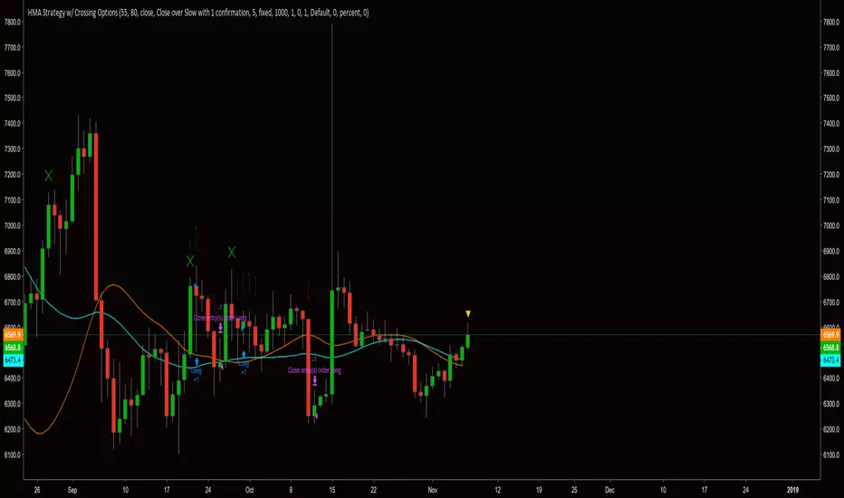 Previous versions candle confirmation was based on the CLOSE after the crossover being higher than the crossed HMA. This has been adjusted. Now, the HIGH after the crossover must be higher than the HIGH of the crossover to be considered a valid signal.