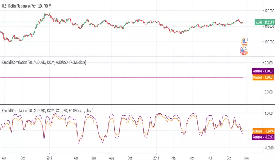 In this script I compare Kendall Coefficient and Pearson Coefficient (using built-in "correlation" function).