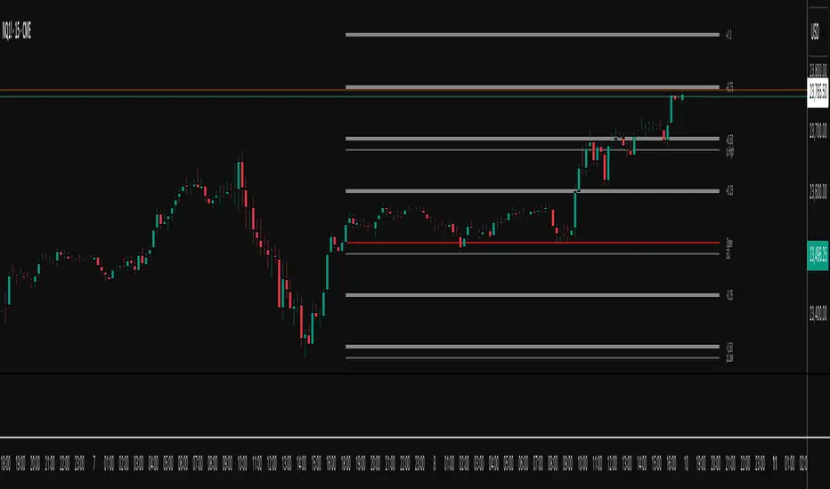 Risk Management – The mirrored range and quartile levels help traders size positions, define stop placements, and set profit targets with volatility-adjusted precision.