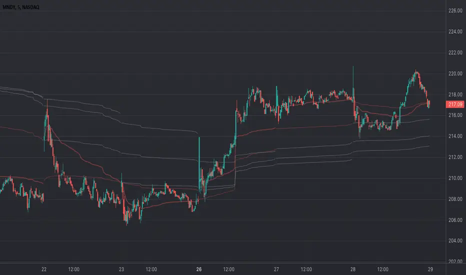 The Multi-Day Rolling VWAP indicator for intraday timeframes allows you to track the Volume Weighted Average Price (VWAP) over multiple days, specifically for 1-day, 2-day, 3-day, 4-day, and 5-day periods. This indicator beyond the standard daily VWAP provides a broader perspective on price trends and market sentiment.