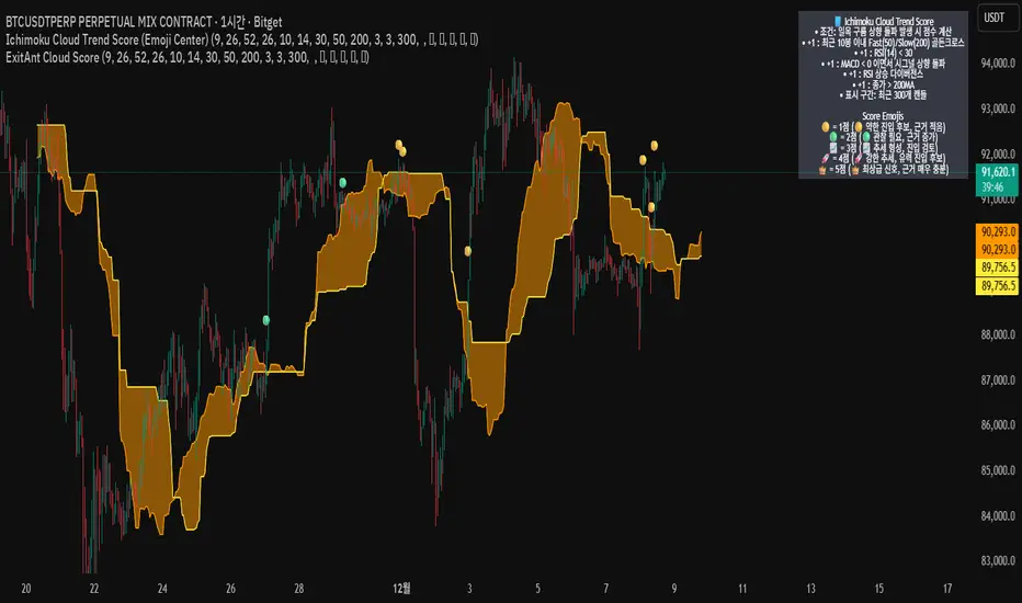 ExitAnt Cloud Score는 일목균형표(Ichimoku Cloud)의 구름대 돌파 신호를 기반으로,