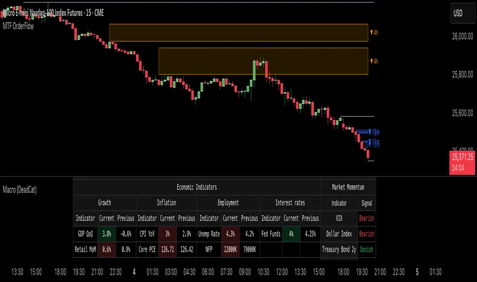 This indicator provides a compact, data-driven view of key U.S. macroeconomic conditions and market sentiment — directly on your TradingView chart.