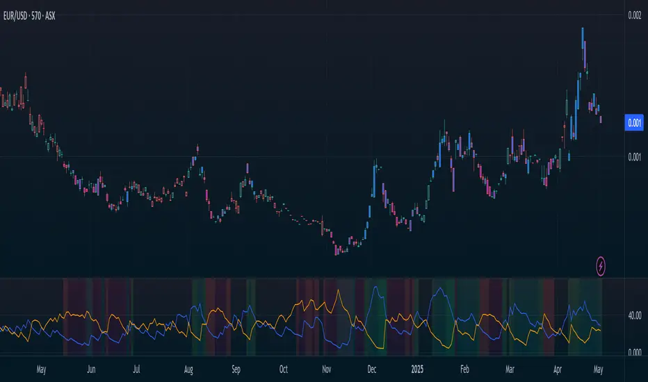 Color Candles - an option to transpose the bullish and bearish crossovers to the main candle bars. Can be turned off in the Style Tab by deselecting 'Bar Colors'. Dark blue is bullish, dark purple is bearish, and the black inner color is neutral. Note that the outer red and green border will still be distinguished by whether each individual candle is bearish or bullish during the specified timeframe.