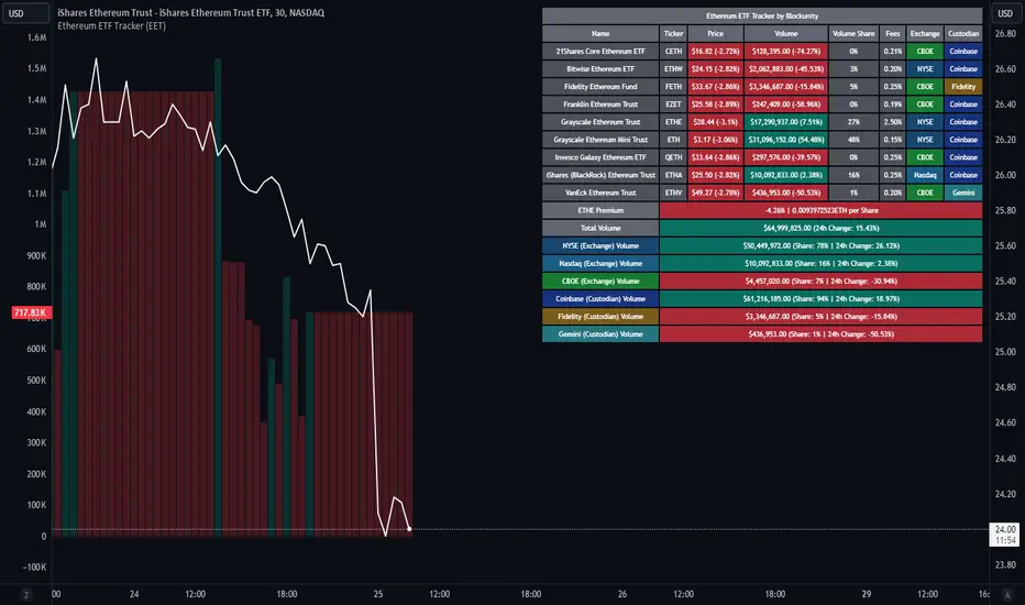 The goal is to provide the community with a tool for tracking all Ethereum ETF data in a synthesized way, directly in your TradingView chart.