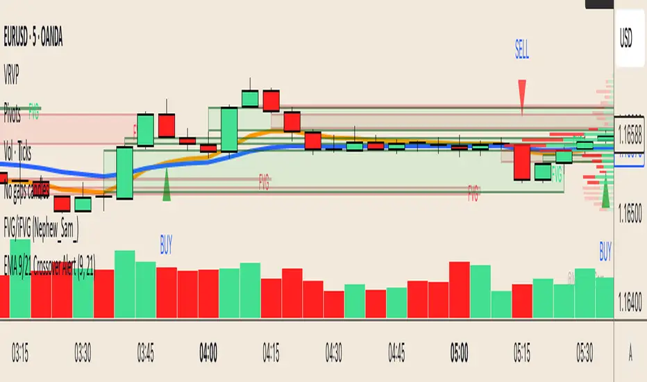 This indicator gives entry signals through EMA crossover and the gives the opportunity to set up alerts. I will update this indicator with exits in the future. it's written in Pinesctipt v5