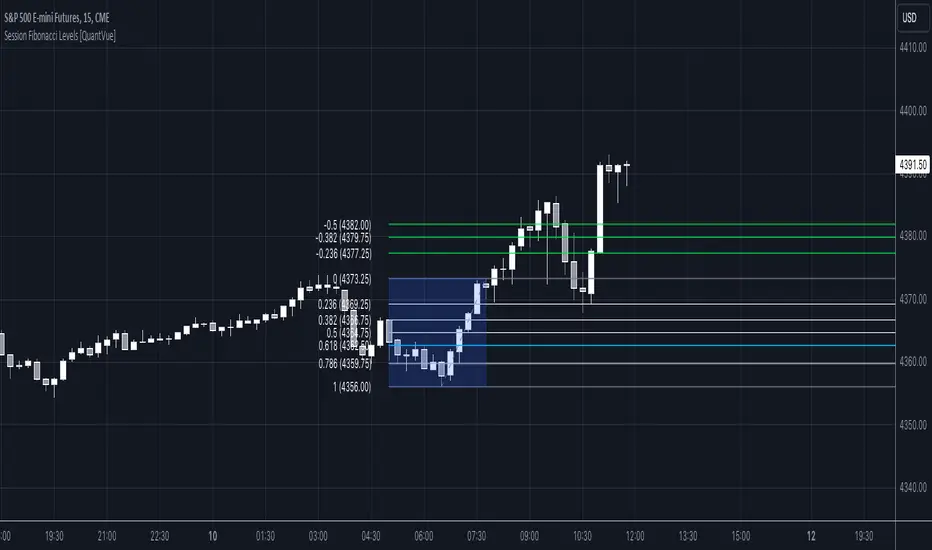 🔹The indicator calculates Fibonacci retracement and extension levels based on the high and low prices of a specified trading session, dynamically adjusting to the location of the high and low bar.