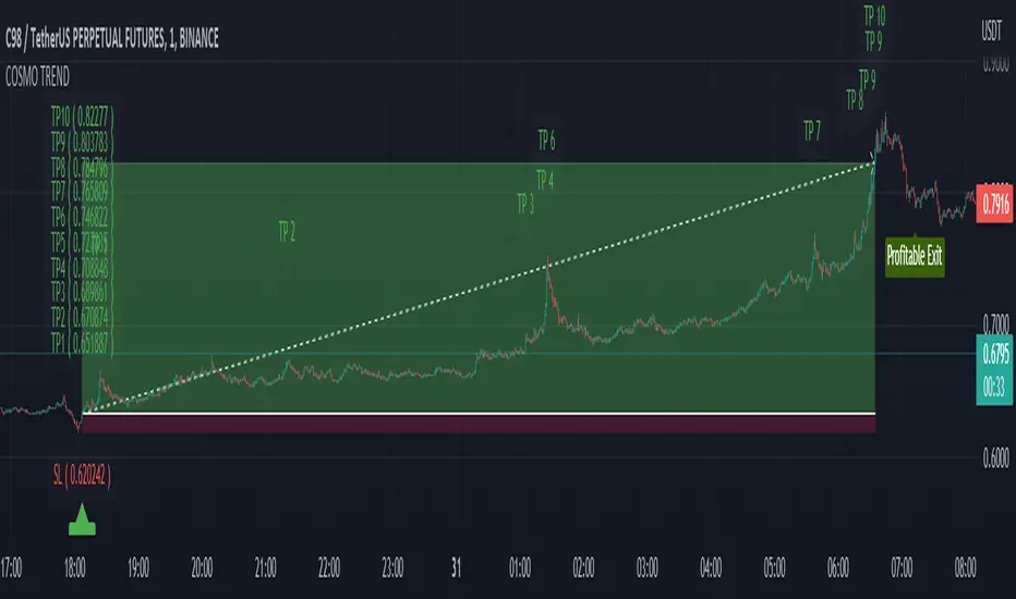 More than Ten Takeprofit price points can be seen in this indicator , The Stoploss price point can be seen as well . You can simply adjust take profit percentage and stop loss percentage in indicator settings