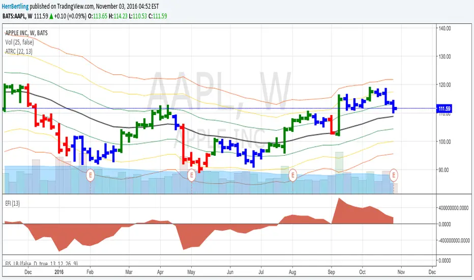 Plots three Average True Range channels as described in Alexander Elder's "The New Trading for a Living".