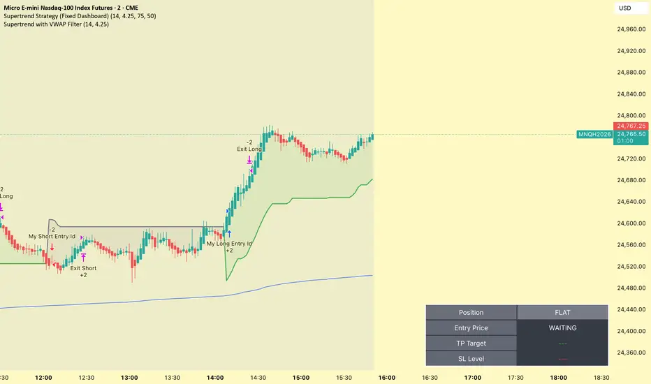 Dynamic Coloring: If the Supertrend says "up" but price is below VWAP, the line turns gray.