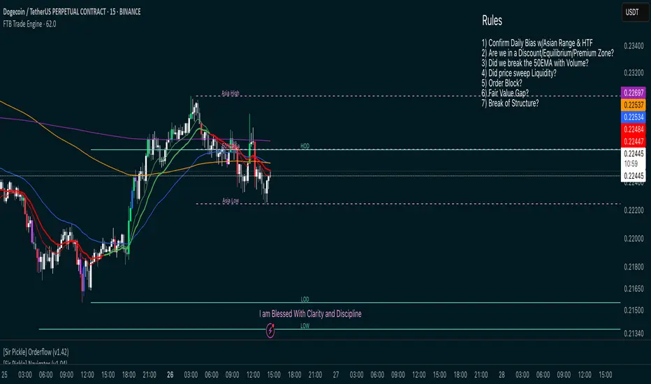 The FTB Trade Engine is an indicator suite I built for myself as a crypto trader. It's designed specifically for trading Institution levels, EMAs, PVSRA Volume Candles, and Session Timings. It helps me spot high probability trade setups without overcomplicating things.