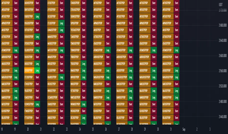 This panel allows the trader to monitor multiple pairs at a single screen, giving an immediate vision of possible entries and exits (Long/Short/Strong Long/Strong Short Signals). It has the following characteristics: