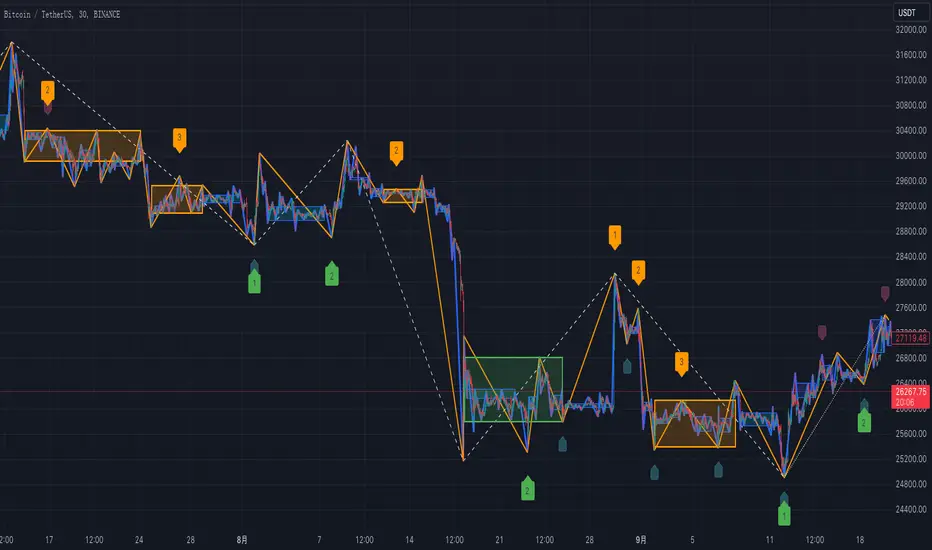 Fractals, strokes, line segments and pivots are basic elements in the Theory of Entanglement, and only by accurately drawing them on a chart can one find the most accurate buying and selling points. However, manually drawing these elements on an ever-changing chart is both challenging and time consuming, and may lead to incorrect interpretation of the market trend. Our Zen Pro indicator aims to provide the most accurate drawings of strokes, line segments, and pivots, as well as to automate the drawing process for three consecutive levels such as 1m, 5m, and 30m (similar to time frames but not necessarily the same). Buying and selling points are also labeled on the chart to provide users with appropriate trading guidance.