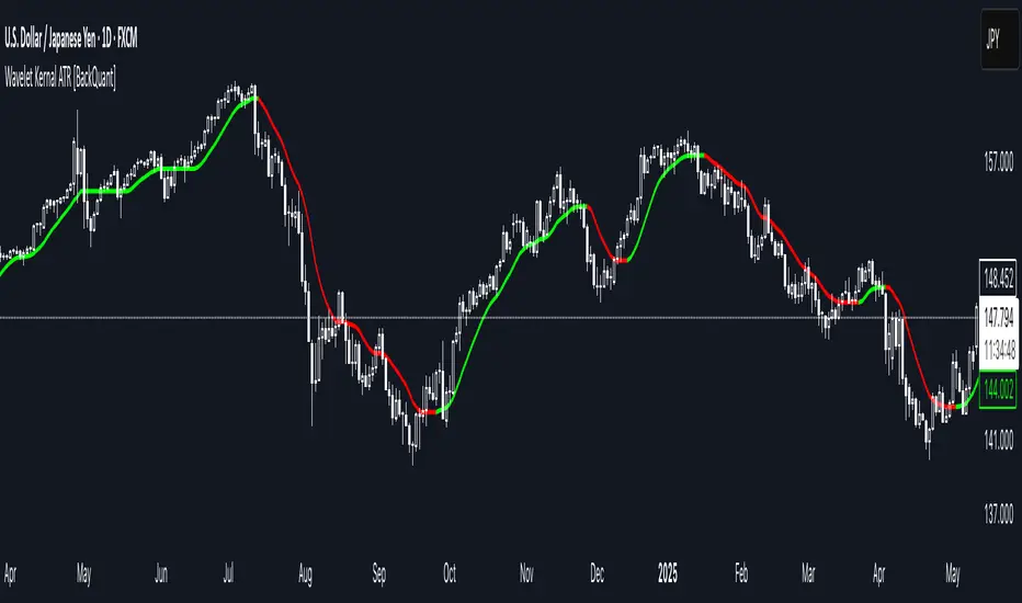 Wavelet Kernal ATR is a closed-source, chart-side tool that fuses an edge-preserving “wavelet kernal” smoother with an ATR-aware regime line. The goal is simple: follow the real move, ignore the static, and give you clean, visual places to manage risk. It can color the trend directly on price, flip states when regime changes, and (optionally) add a secondary moving-average overlay for confirmation all while keeping the chart readable.