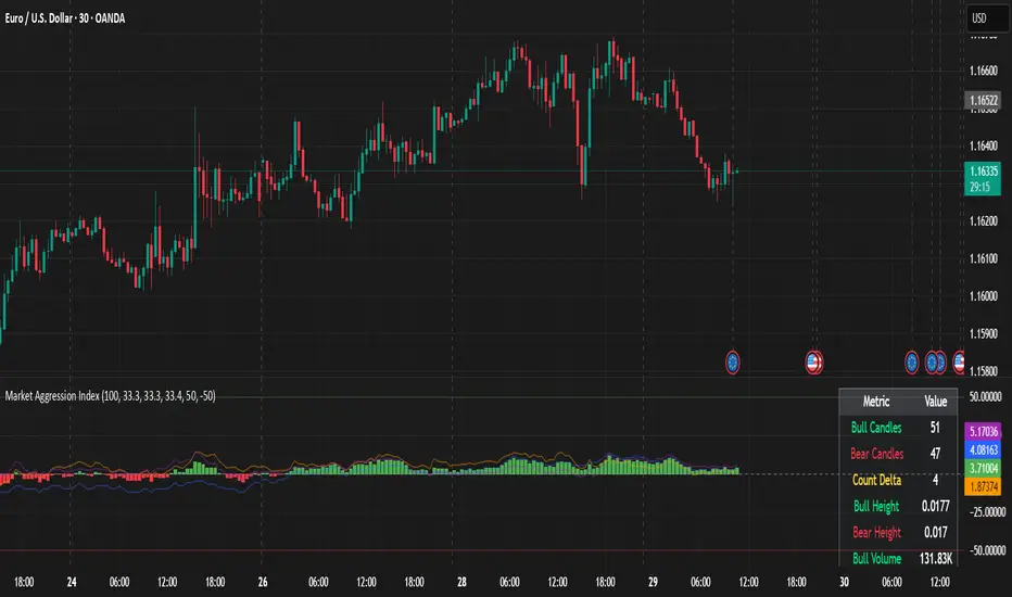 - the number of bull vs bear candles;