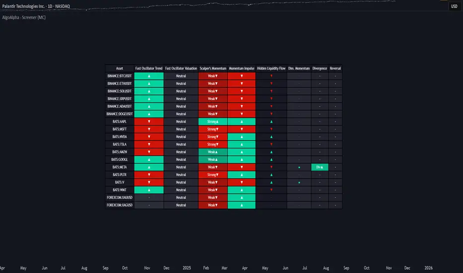- Trend Confluence: Look for assets where multiple components show alignment. For example, an ideal long setup might show a bullish "Momentum Impulse" (▲), a "Strong▲" reading in "Scalper's Momentum," and a bullish trend in the "Fast Oscillator." This indicates that the long-term, medium-term, and short-term momentums are all in agreement.