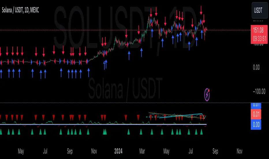 Thus the indicator returns 0 and Strategy closes all it's positions when falling above 0 (or rising bellow 0) and we combine higher and lower timeframes to gauge the trend.